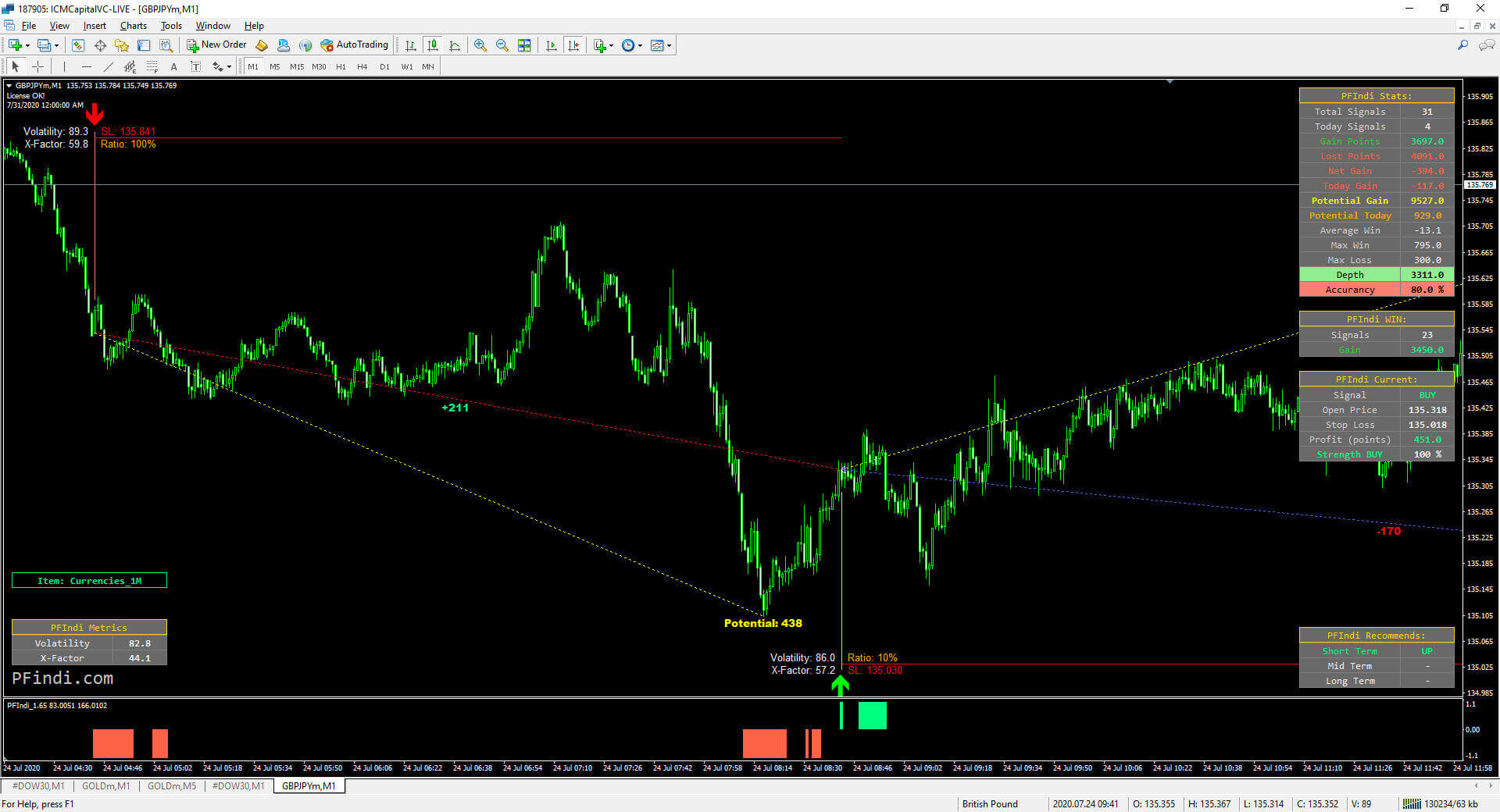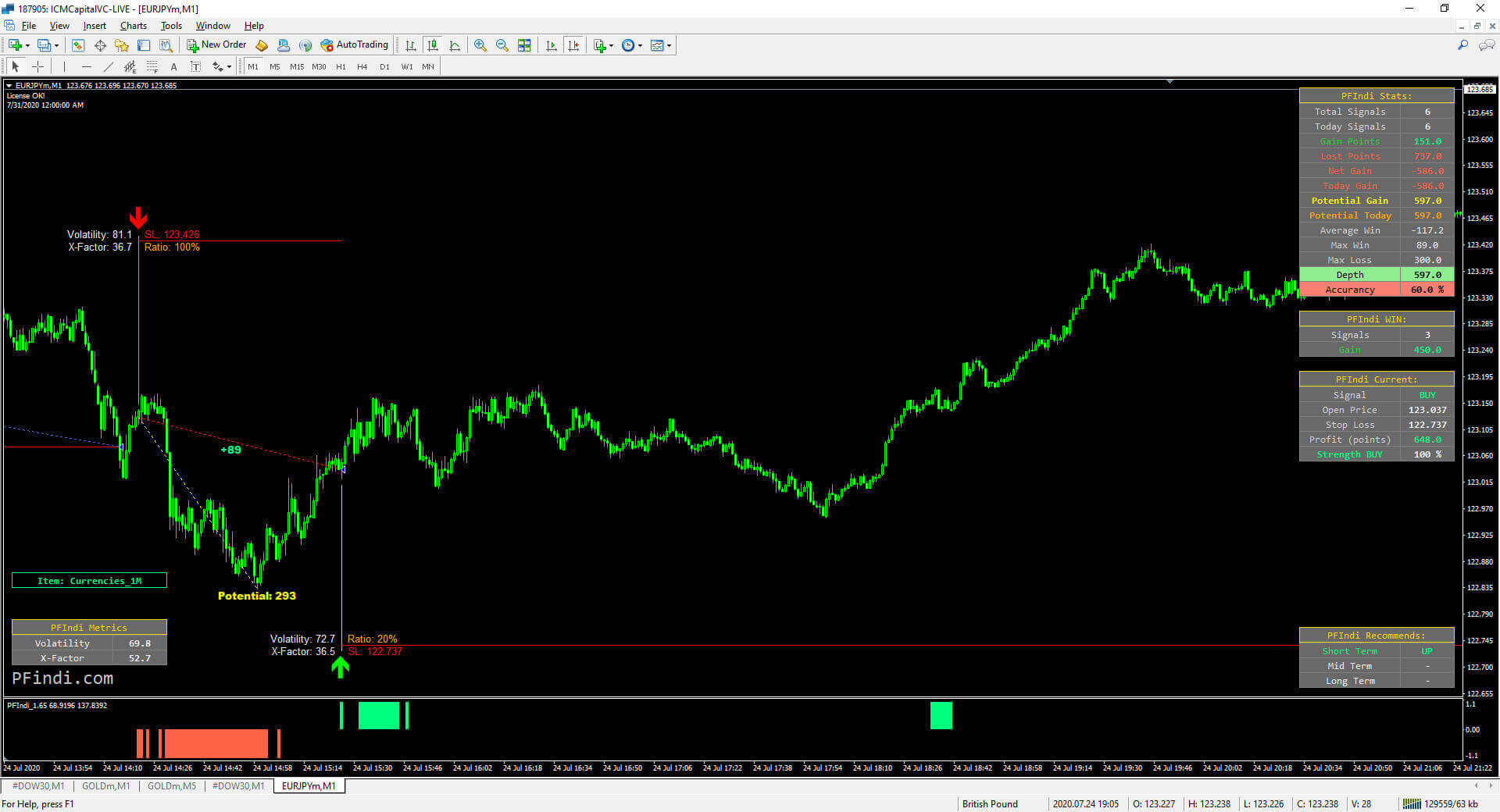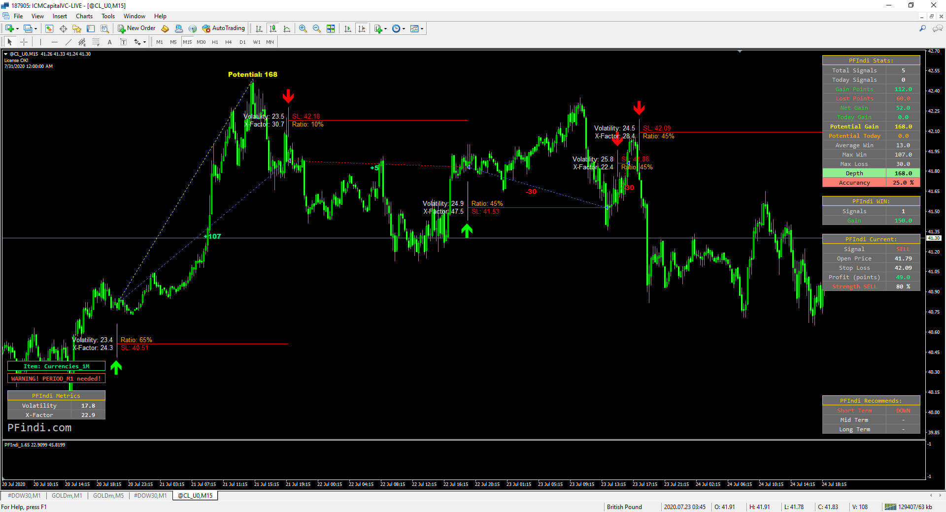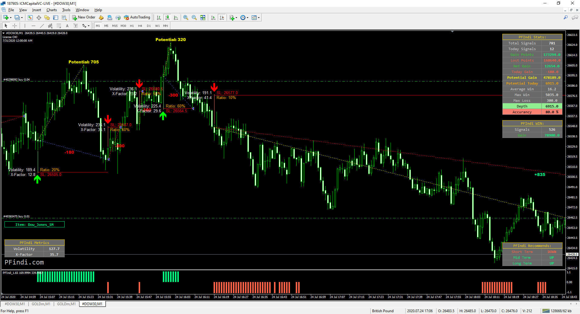PF supports all of the major currencies and most of the crosses along with Dow Jones