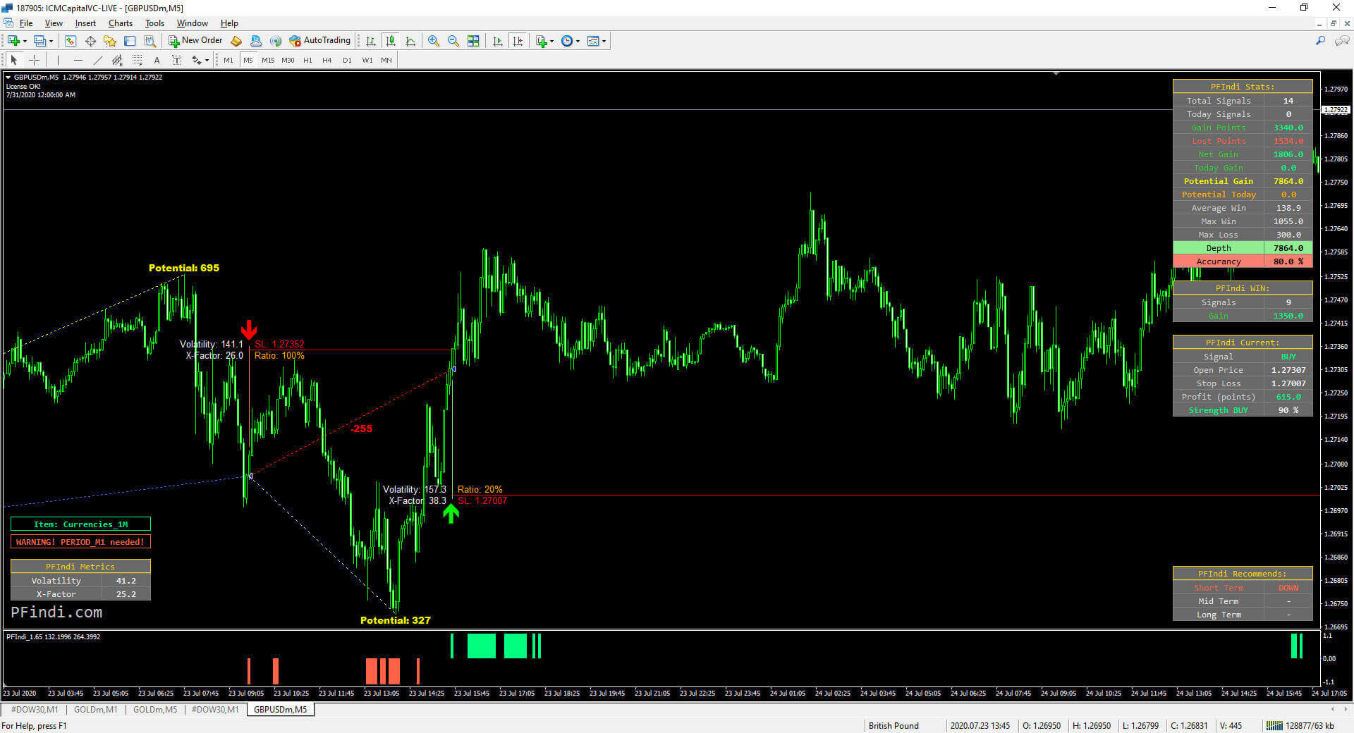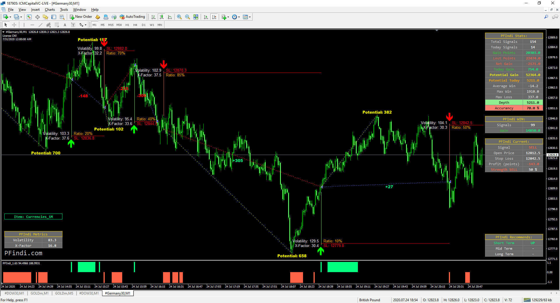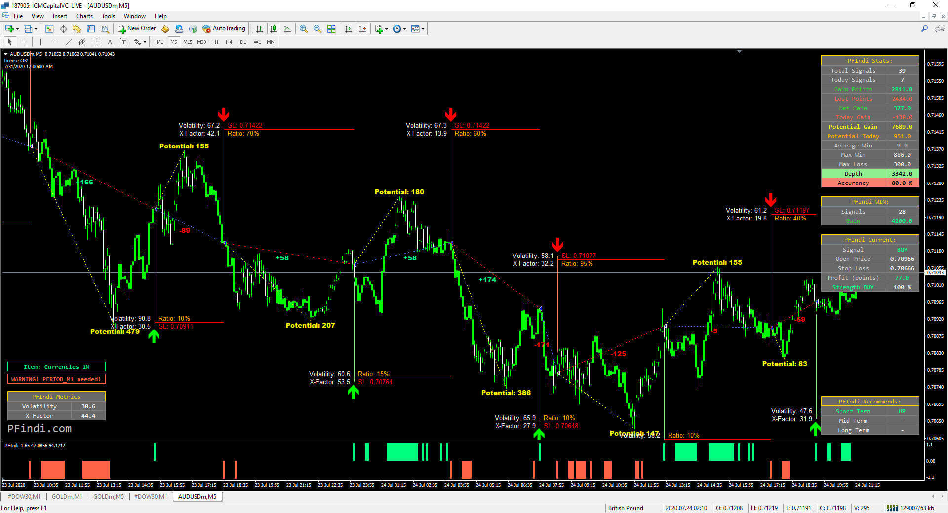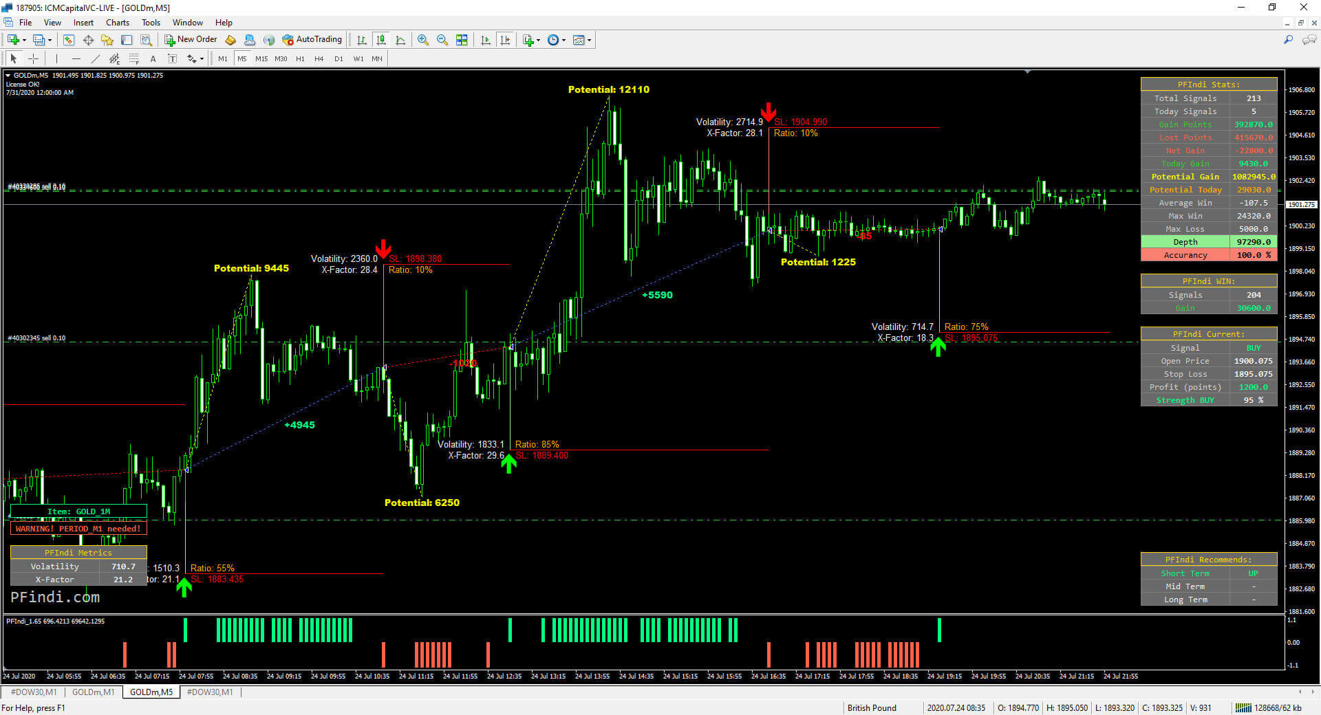 PF supports all of the major currencies and most of the crosses along with Dow Jones